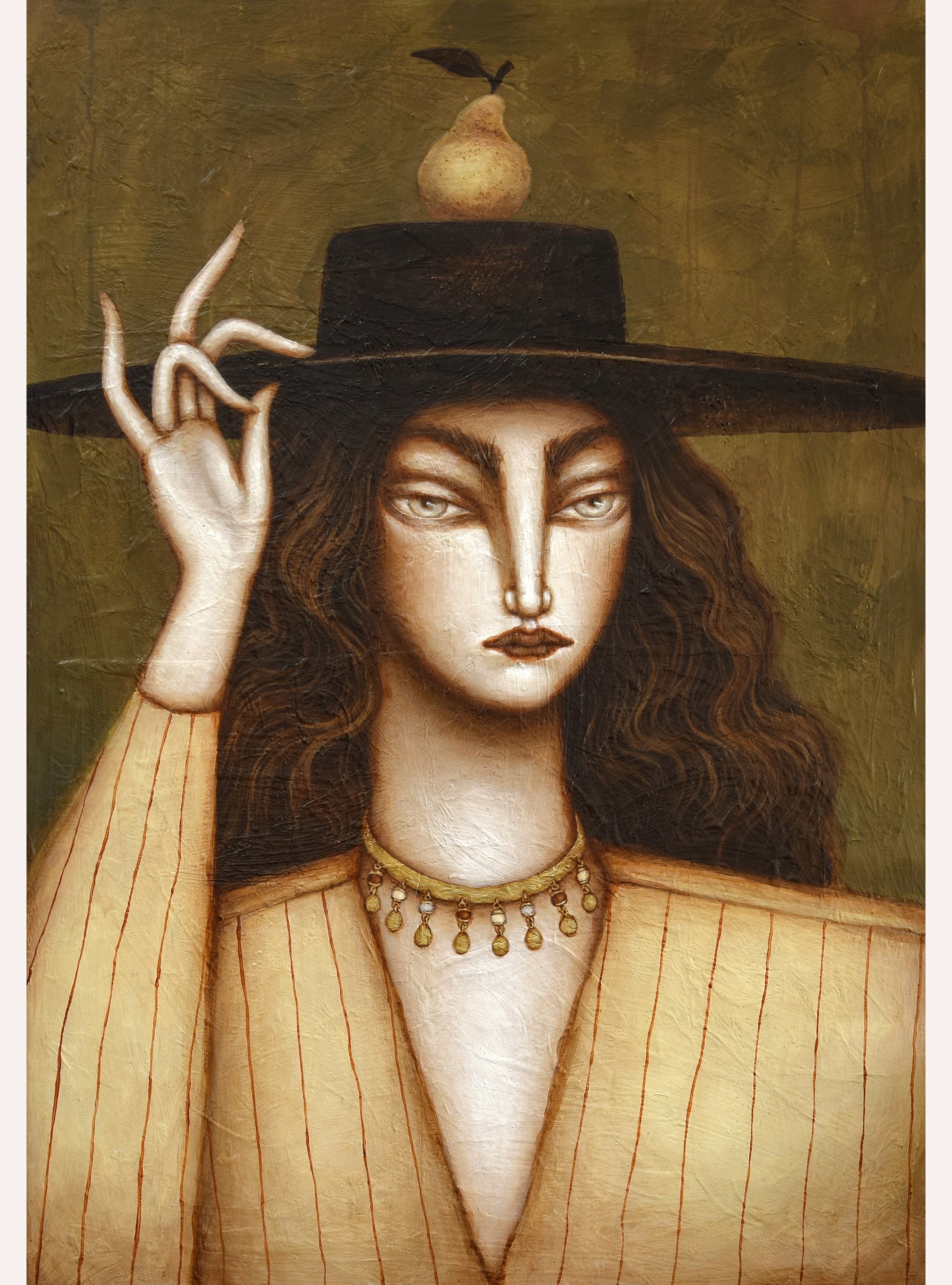 Sandra Elisabeth Nobre is a Swedish-born artist based in Portugal, creating a timeless visual universe where women, vessels, animals, and symbols coexist like chapters of the same book. Rooted in a deep fascination for the feminine and inspired by history, architecture, and interior ornament, her paintings transform the ordinary into the sacred. Each work, whether a portrait of a woman or a solitary object - is treated as an icon, a fragment of her personal mythology.