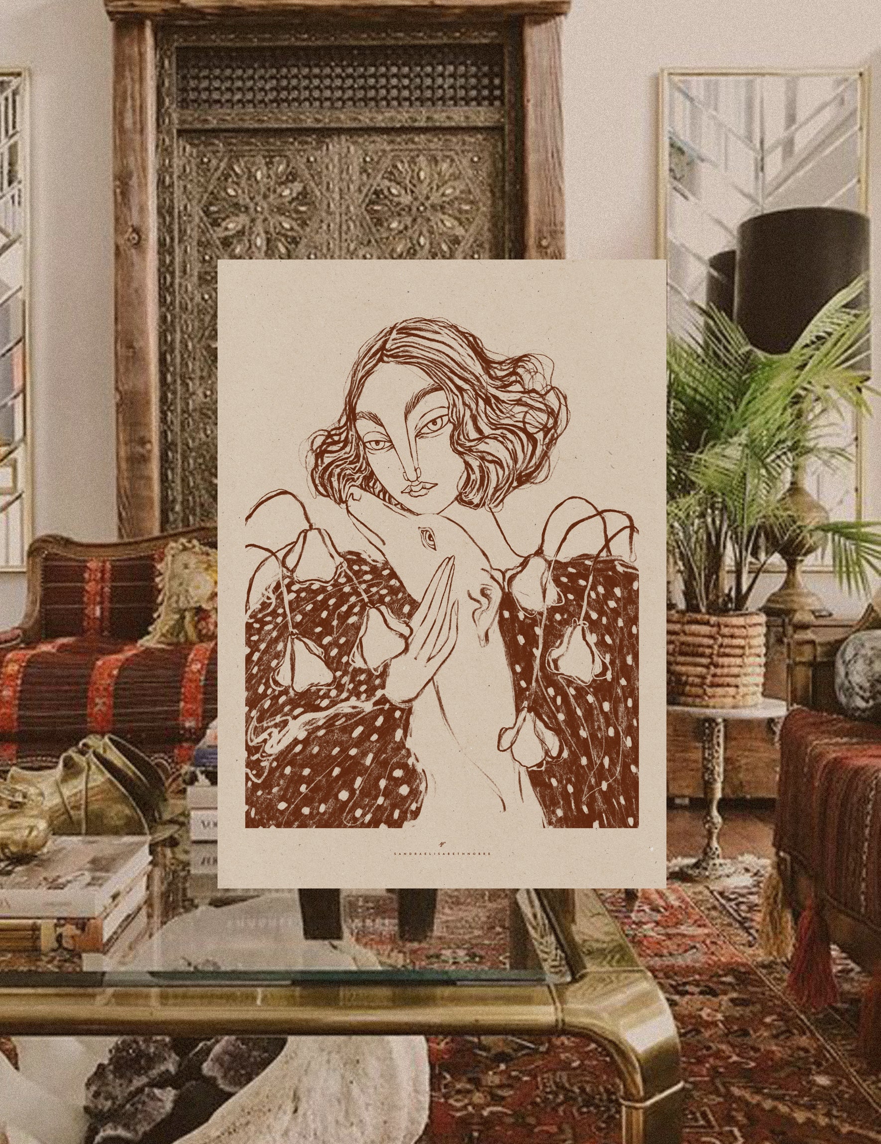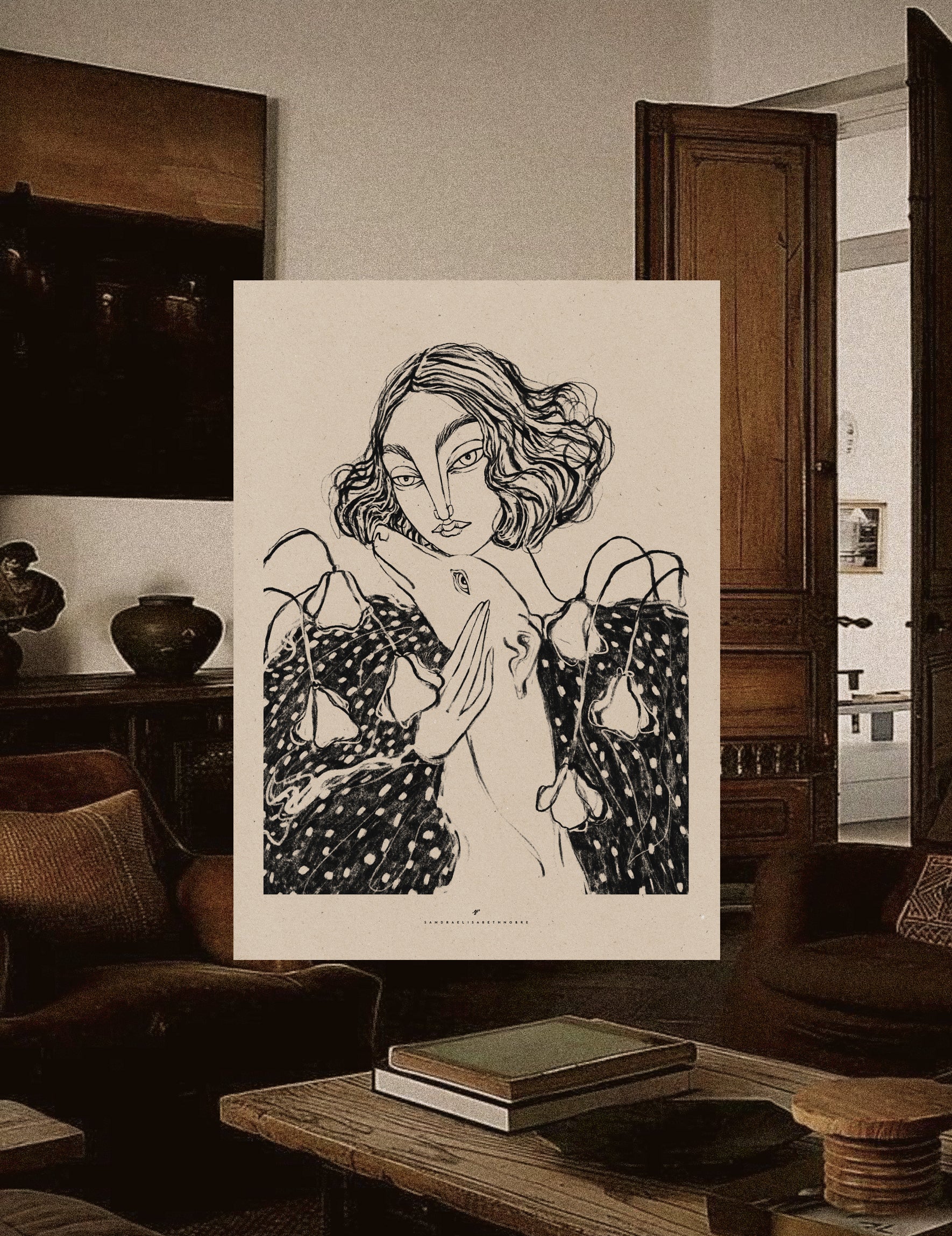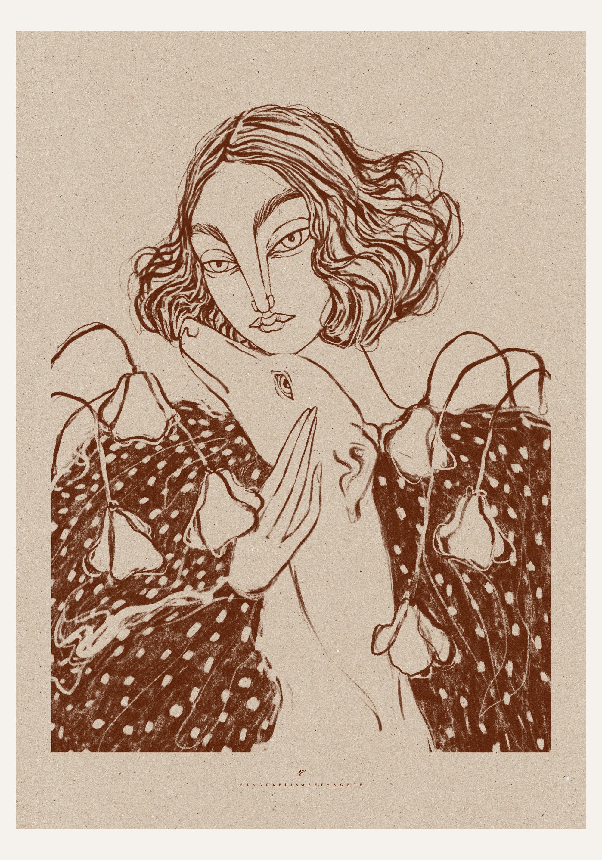This is a signed open edition fine art print (not numbered) from the sketch that I made for the original painting "Perfume". Printed on Hahnemühle Matte Fibre - a 200g slightly textured, acid-free and archival-safe paper with a smooth matte finish and a natural white base. These are not posters but high-quality fine art prints, crafted to endure for generations.